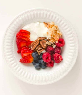 Yoghurt and Fruit Another great snack option! Use your yoghurt of choice whether that's dairy free, greek yoghurt etc. Add your fave toppings like fresh fruits, granola, nuts, seeds